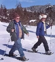 | The sport of snowshoeing has gained tremendous popularity in the last few years. Lightweight snowshoes and groomed cross country ski trails that provide a packed surface for snowshoers have contributed significantly to this fun winter adventure. Snowshoes are available in a variety of lightweight and sport sizes. No special shoes are necessary and this is definitely fun for everyone! Snowshoes are available for sale in the store as well. |
